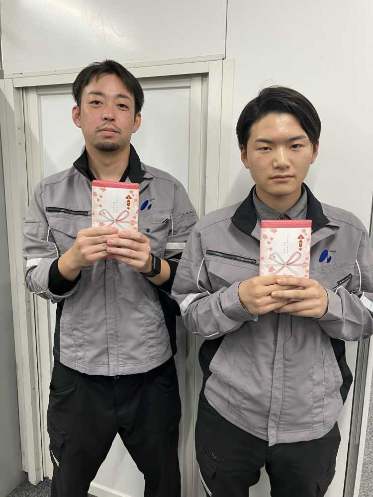 また、御祝いごとの多い年末年始となりました為、該当社員へ成瀬社長より御祝いの品が贈呈されました。