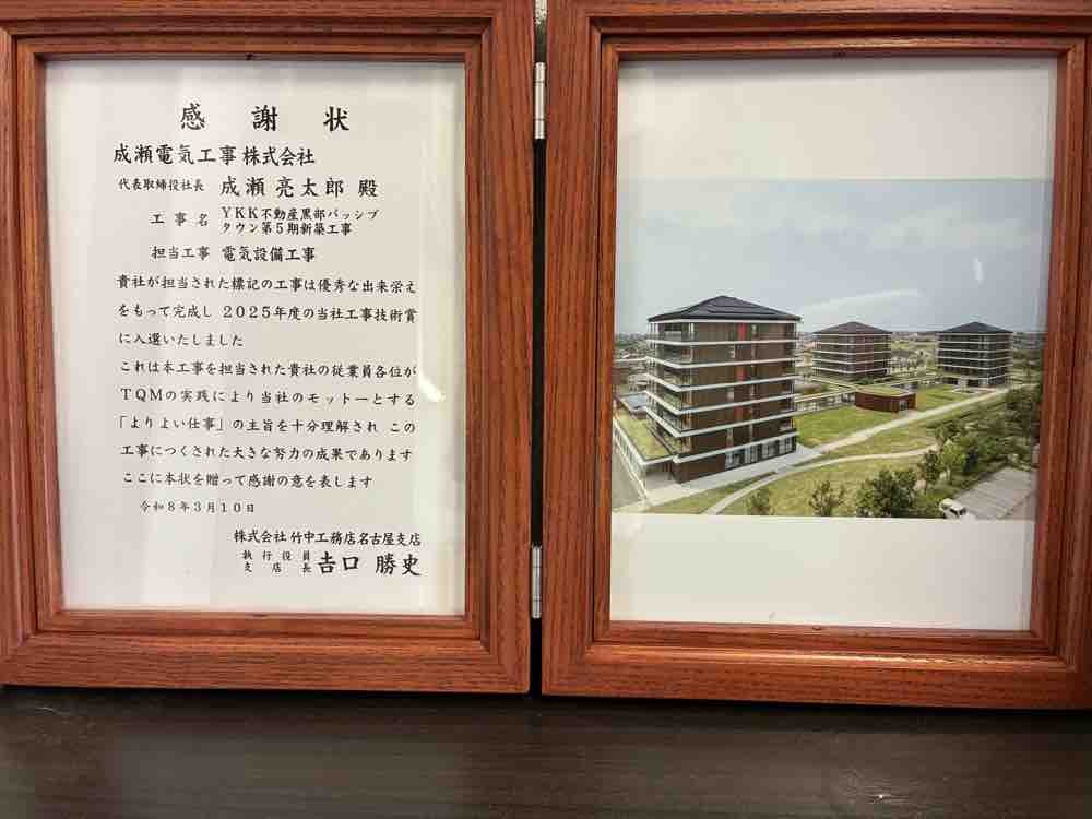 長期間の現場従事、上司のサポート、工事において高い評価をいただいた点での受賞となりました。